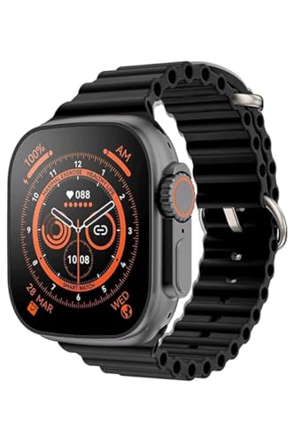 ADHOMAX - ساعة ذكية T2000 الترا 2 أنيقة 49 ملم بشاشة عالية الدقة HD وتقنية ان اف سي، مكالمات بلوتوث، شحن لاسلكي، قياس نسبة الأكسجين في الدم، متتبع اللياقة البدنية، متوافقة مع IOS وأندرويد من ادهوماكس (أسود 1)