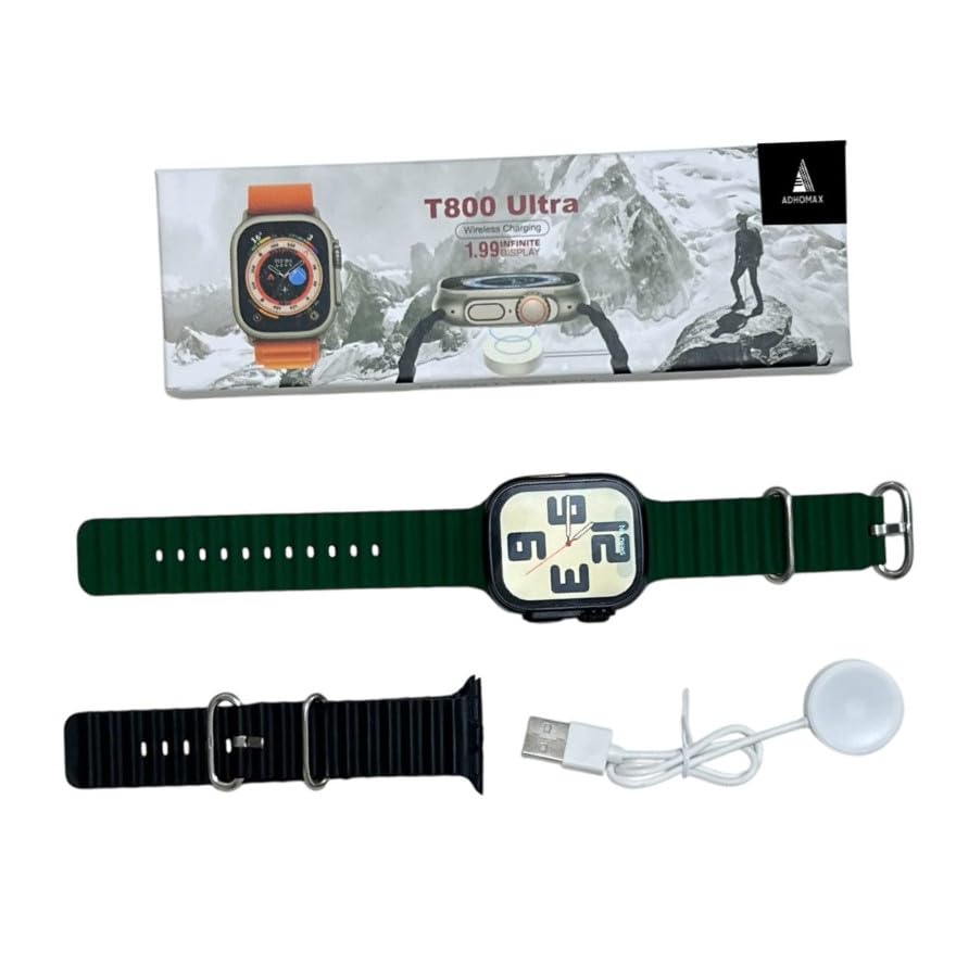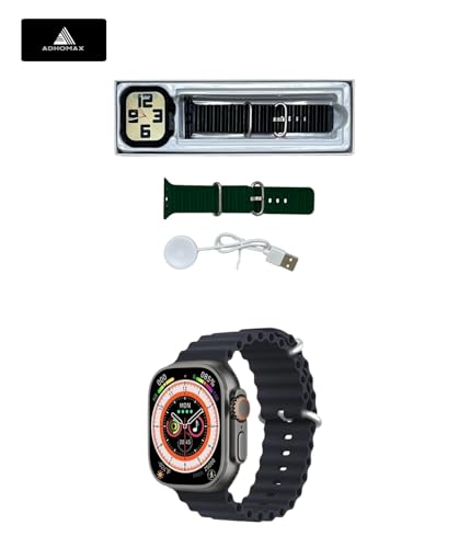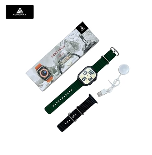 ADHOMAX - ساعة ذكية ادهوماكس طراز T800 بتصميم أنيق شاشة 1.99 بوصة HD عالية الدقة متعقب للياقة وقياس معدل ضربات القلب والأكسجين للمكالمات وشحن لاسلكي تعمل مع iOS وأندرويد، للرجال والنساء