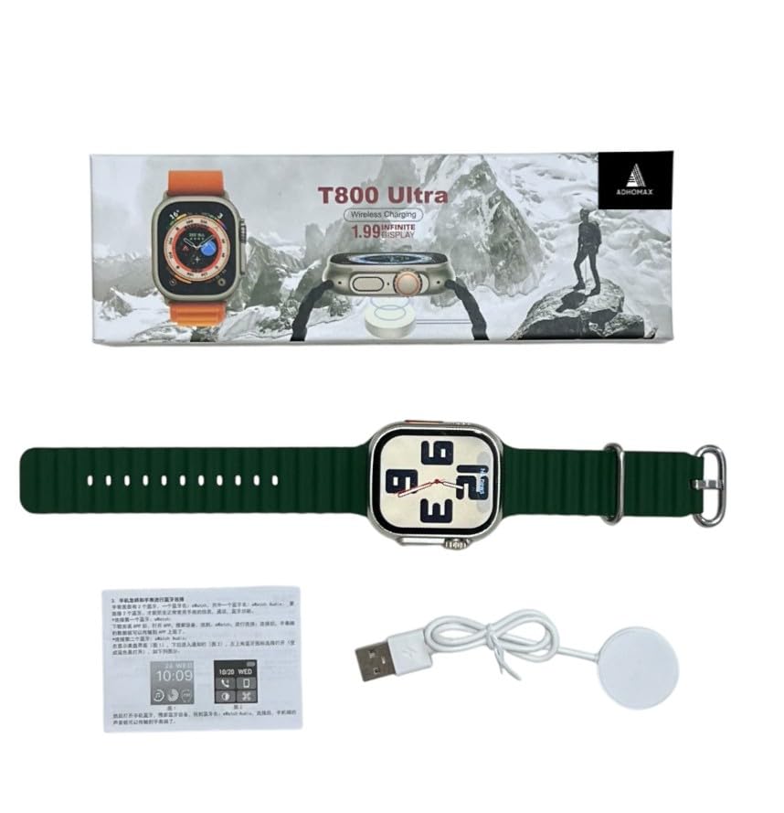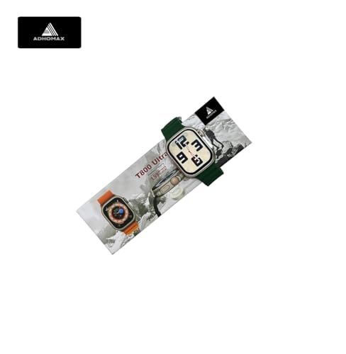 ADHOMAX - ساعة ذكية طراز T800 للرجال والنساء بتصميم أنيق شاشة 1.99 بوصة HD عالية الدقة متعقب للياقة وقياس معدل نبضات القلب والأكسجين للمكالمات وشحن لاسلكي تعمل مع iOS وأندرويد من ادهوماكس، زيتي، قطعة واحدة