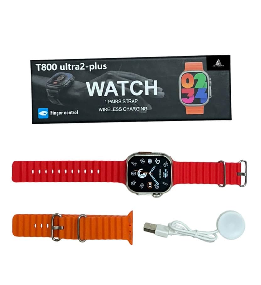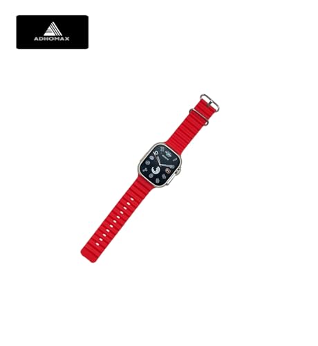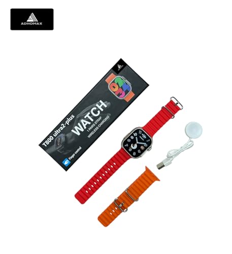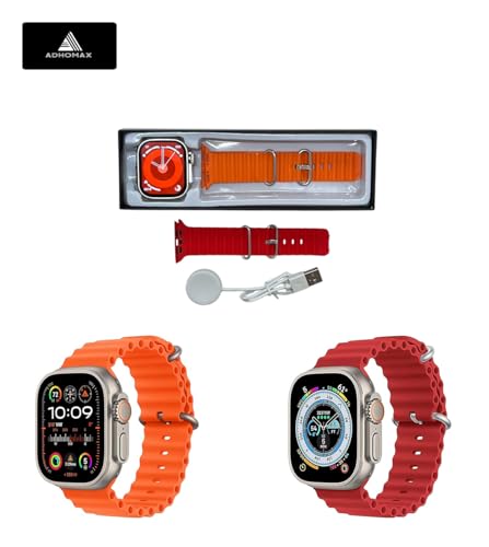 ADHOMAX - ساعة ذكية جديدة T800 الترا 2-بلس من ادهوماكس، تصميم انيق 2.2 انش، ان اف سي، متتبع اللياقة البدنية، معدل ضربات القلب، مراقب الاكسجين، المكالمات، شحن لاسلكي | IOS واندرويد للرجال والنساء (برتقالي+احمر)