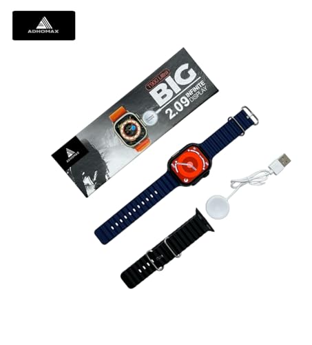 ADHOMAX - ساعة ذكية T900 أنيقة بشاشة عرض عالية الدقة HD 2.09 بوصة بتقنية اتصال قريب المدى ومتتبع لياقة بدنية وقياس معدل نبضات القلب وأكسجين ومكالمات وشحن لاسلكي لـ iOS وأندرويد لرجال ونساء من ادهوماكس (قطعة)