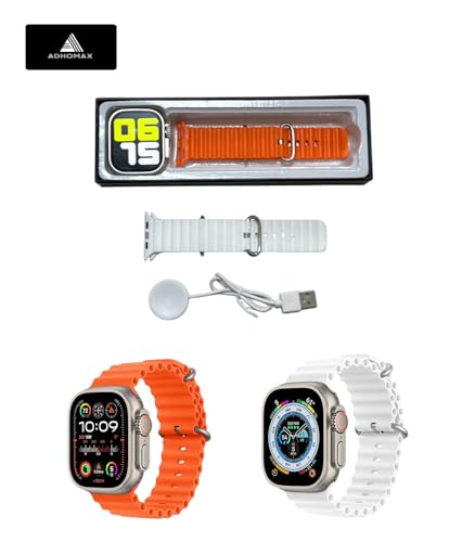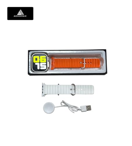 ADHOMAX - ساعة ذكية جديدة T900 الترا من ادهوماكس، شاشة HD 2.1 انش، ان اف سي، متتبع اللياقة البدنية، معدل ضربات القلب، مراقب الاكسجين، المكالمات، شحن لاسلكي | IOS واندرويد للرجال والنساء (1، برتقالي + ابيض)