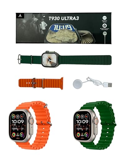 ADHOMAX - ساعة ذكية T930 الترا 3 أنيقة 49 ملم ان اف سي ديناميكية مجسمة ثلاثية الأبعاد تتبع لياقة بدنية معدل ضربات قلب مكالمات بشحن لاسلكي لأجهزة IOS وأندرويد للرجال والنساء من ادهوماكس، لون برتقالي وأخضر زيتي