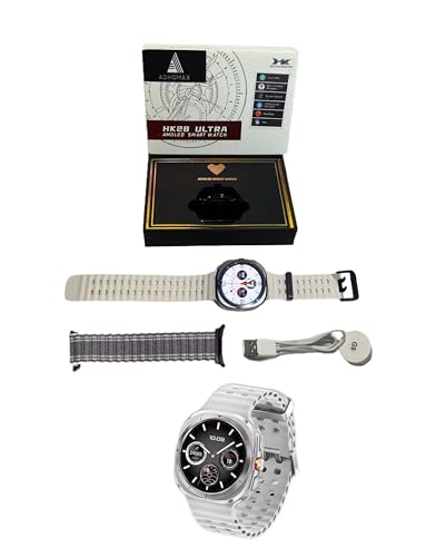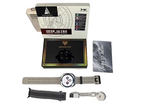 ADHOMAX - ساعة ذكية HK28 الترا 46 ملم اموليد ثلاثية الأبعاد بتصميم أنيق وتقنية الذكاء الاصطناعي GPT وخرائط وان اف سي ومساعد صوتي وتتبع اللياقة البدنية والصحية ومكالمات وشحن لاسلكي وير فيت برو من ادهوماكس، فضي