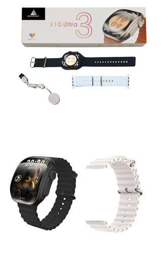 ADHOMAX - ساعة ذكية X10 الترا 3 بشاشة منحنية ان اف سي للجنسين من ادهوماكس، ميزات BPM وSpO2/الطقس/الكاميرا/الموسيقى/تتبع اللياقة البدنية/المكالمات/شحن لاسلكي/تطبيق ويرفيت برو، iOS وأندرويد (سوار أسود + أبيض)