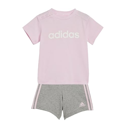 adidas - طقم تيشرت رياضي قطني مزين بشعار خطي للأولاد والبنات البيبي والصغار من اديداس