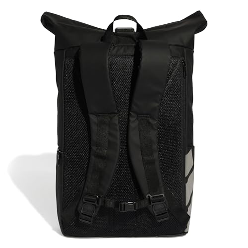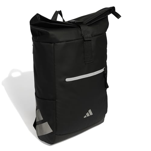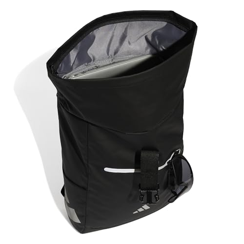adidas - شنطة ظهر رياضية من مجموعة باك تو يونفرسيتي من اديداس للرجال والنساء للتدريب وصالة الجيم، تصميم قابل للف، لون أسود وأبيض، مقاس واحد