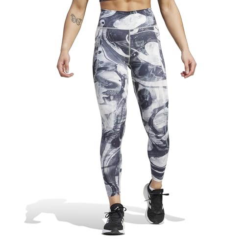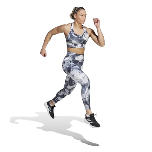 adidas - بنطلون ضيق للجري ديلي رن سي ام 7/8 للنساء من اديداس، لون رمادي وأسود، مقاس XS
