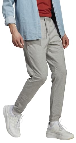 adidas - بنطلون رياضي اسنشيالز للرجال من اديداس، من قماش جورسيه بطبقة واحدة بتصميم متدرج الضيق للجري