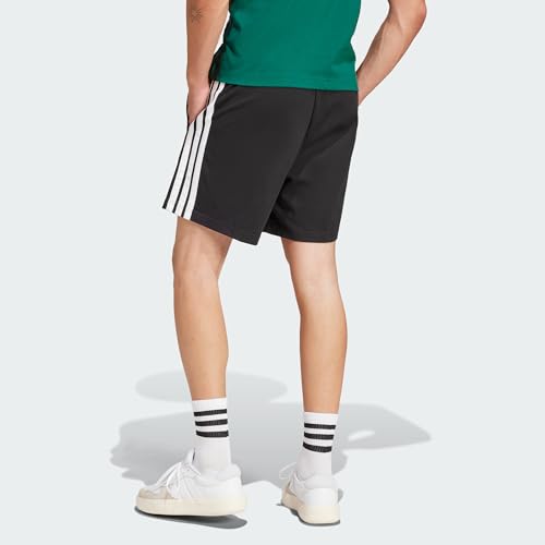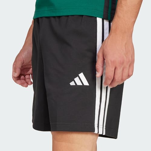 adidas - شورت اسنشيال بطبقة جيرسيه واحدة مزين بثلاثة خطوط للرجال من اديداس، طول 17.78 سم
