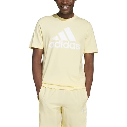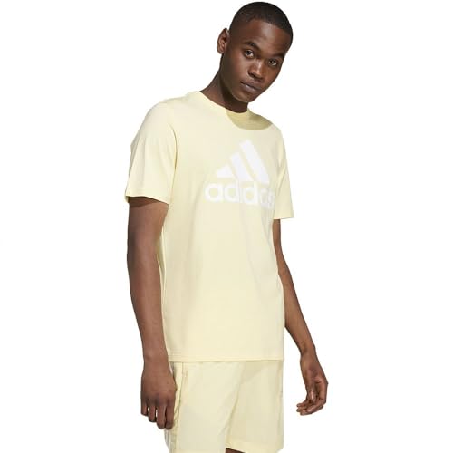 adidas - تيشرت اسنشيالز بطبقة جيرسيه واحدة وأكمام قصيرة وشعار كبير للرجال من اديداس، (قطعة واحدة)