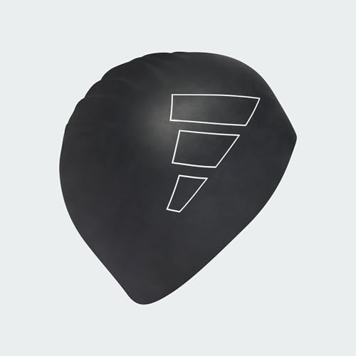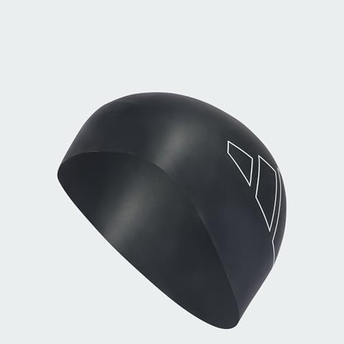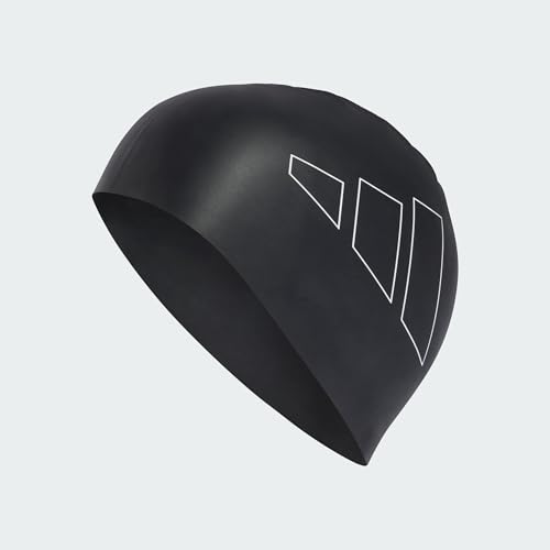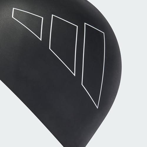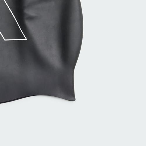 adidas - بونيه سباحة للبالغين بلوجو أسود أبيض للرجال والنساء من اديداس، مقاس واحد