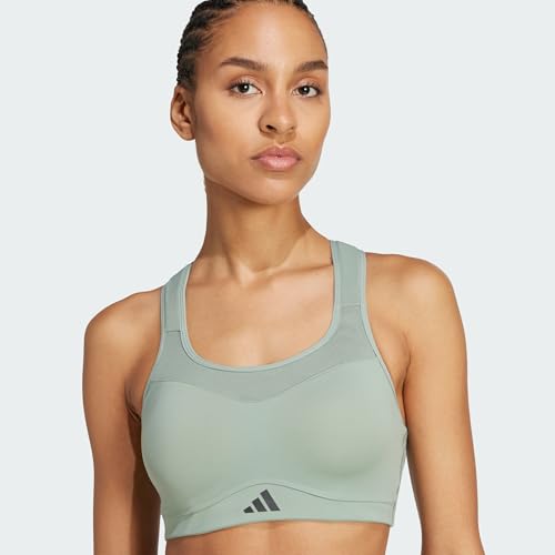 adidas - حمالة صدر مبطنة برقبة واسعة ومشبك إغلاق بلون أخضر وفضي من اديداس