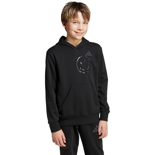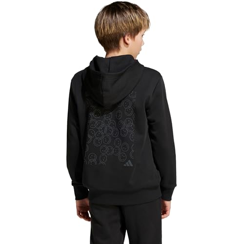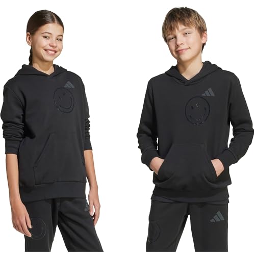 adidas - سويت شيرت سمايلي بغطاء للرأس وتصميم وجه مبتسم للأطفال الصغار من الجنسين من اديداس