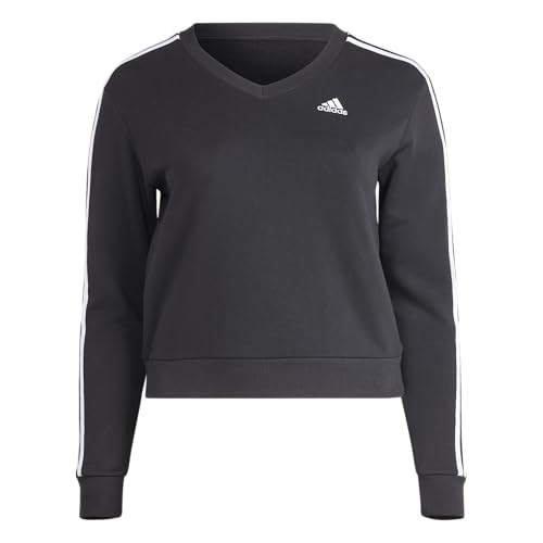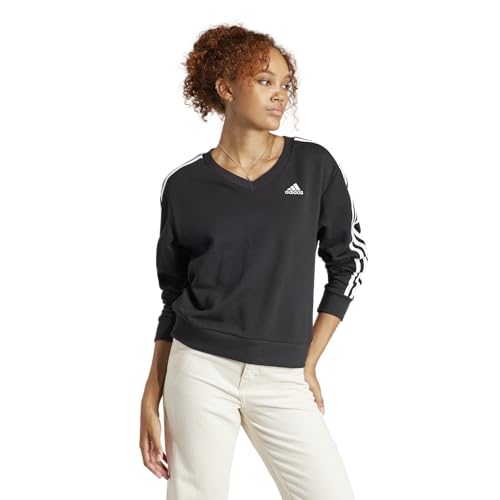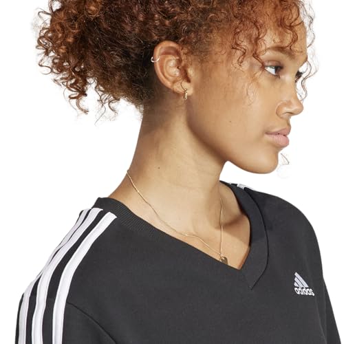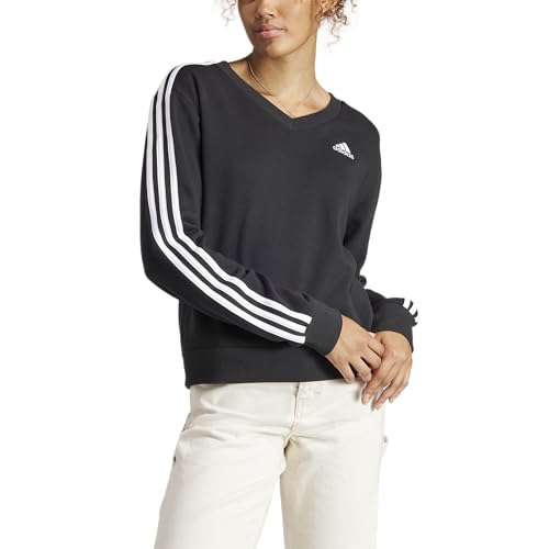 adidas - سويت شيرت رياضي بياقة شكل V وأكمام طويلة مزين بـ 3 خطوط شعار للجيم والتدريب للنساء من اديداس