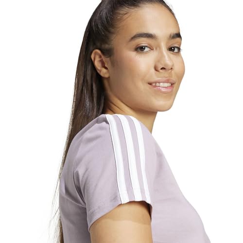 adidas - تيشرت تدريب مرن بأكمام قصيرة مع تصميم الثلاثة خطوط الخاصة بالعلامة التجارية للنساء من اديداس