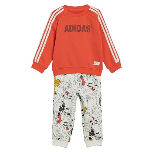 adidas - طقم ملابس من تيشرت برقبة دائرية ضيقة وبنطلون رياضي بطبعة رسومات شخصية ديزني ميكي ماوس من اديداس