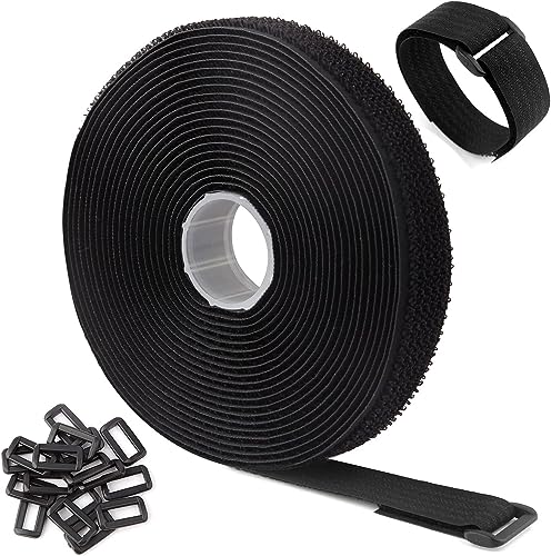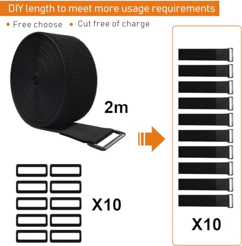 Generic - أشرطة كابل قابلة للتعديل بطول 2 متر مزودة بعدد 10 أبازيم قابلة للقص بالحجم المناسب بسهولة، أربطة كابلات سوداء قابلة لإعادة الاستخدام، شريط تثبيت فيلكرو لتنظيم الكابلات، منظم الأسلاك، لون أسود (عرض 2