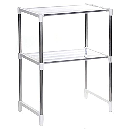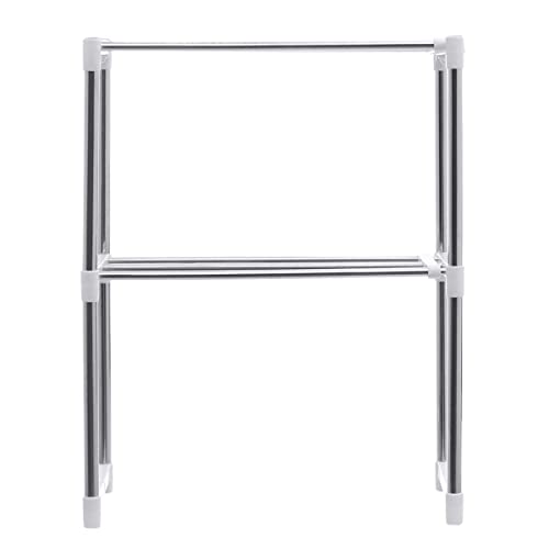 Other - رف تخزين ملائم للميكروويف من طبقتين قابل للتعديل، ستانلس ستيل، فضي