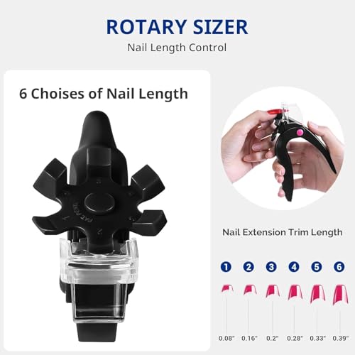 - مقاس طول قابل للتعديل للأظافر المتساوية - يتميز بمينا مدمج يساعدك على اختيار طول الظفر الذي تريده بالضبط. وهذا يجعل التشذيب أسهل ويساعدك على الحصول على نفس الطول على كل مسمار دون تخمين.