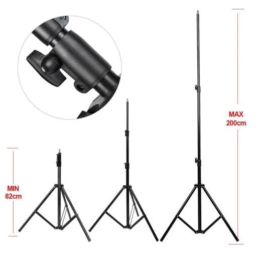 - ارتفاع قابل للتعديل من 82 سم إلى 2 متر لإعدادات الإضاءة متعددة الاستخدامات