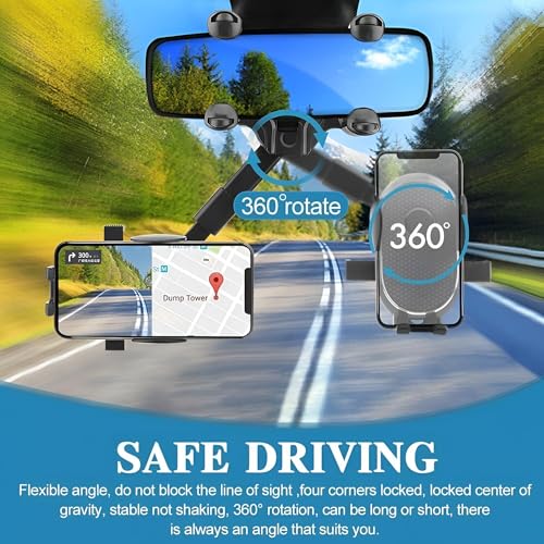 - يتم تثبيت حامل الهاتف هذا بأمان بمرآة الرؤية الخلفية بدون أدوات، مما يضمن تثبيتًا ثابتًا ومقاومًا للاهتزاز يحافظ على هاتفك الذكي في مستوى العين لقيادة أكثر أمانًا وتقليل التشتيت، سواء كنت تتنقل في شوارع المدينة المزدحمة أو تتجول على الطرق السريعة.