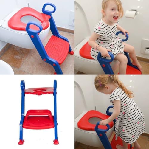Generic - مقعد تدريب للأطفال قابل للتعديل، سلم حمام للأطفال مع مقبض، درجات آمنة باللون الأزرق والأحمر والأصفر