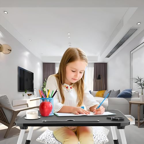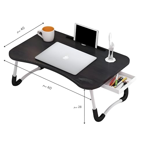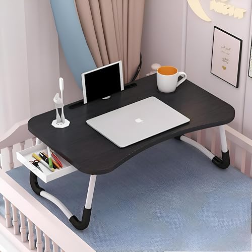Generic - سطح مكتب سرير قابل للتعديل - طاولة سرير محمولة صغيرة مع درج مدمج وحوامل أكواب مثالية للعمل أو القراءة في السرير (لون أسود)