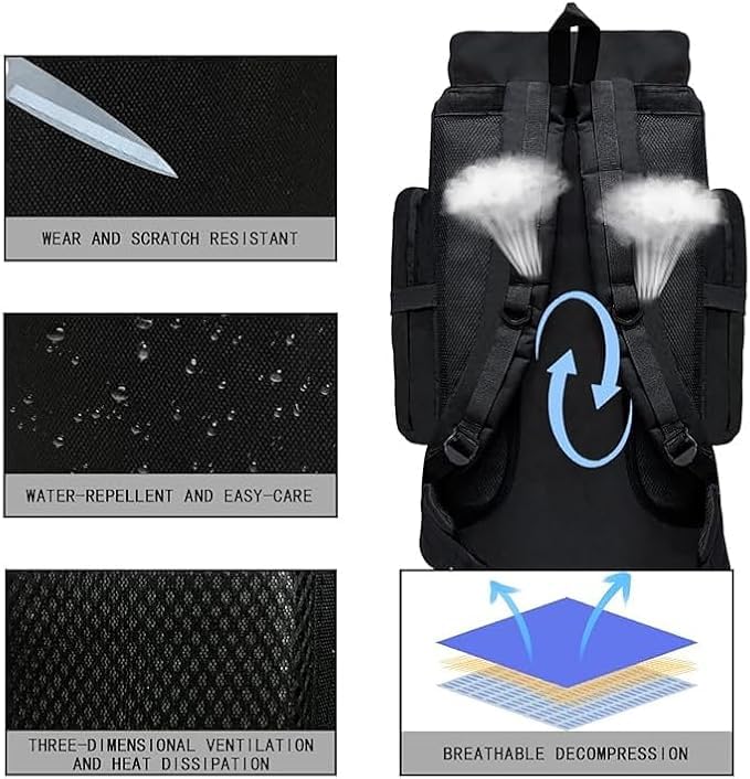 Generic - شنطة ظهر كبيرة مقاومة للماء وقابلة للتعديل للسفر والتخييم بسعة 80 لتر/100 لتر مع 30 كجم - تصميم عملي ومريح لجميع مغامراتك