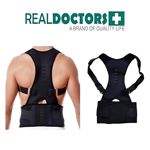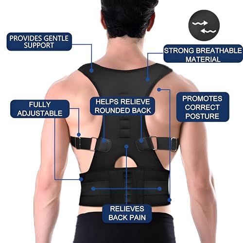Generic - دعامة قابلة للتعديل - دعامة ظهر مغناطيسية مع حزام قابل للتعديل وشد لكلا الجنسين، تخصيص المقاس، تصميم اسود سهل الاستخدام لتصحيح وضعية الجسم طوال اليوم والراحة