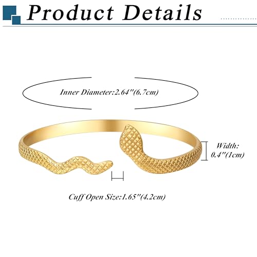 Generic - مجموعة أساور عريضة قابلة للتعديل - تصميم كلاسيكي مفتوح على شكل ثعبان ملفوف حول المعصم، مصنوعة من الفولاذ المقاوم للصدأ، اكسسوار أنثوي للنساء والبنات، مثالية كاكسسوارات أزياء وللارتداء اليومي