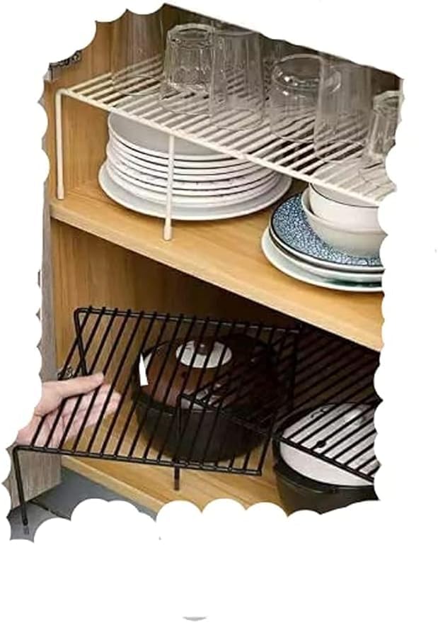 - زيادة المساحة: ينظم مساحة الدولاب بكفاءة من خلال إنشاء مستوى تخزين إضافي مرتفع لأدوات ومستلزمات المطبخ.
