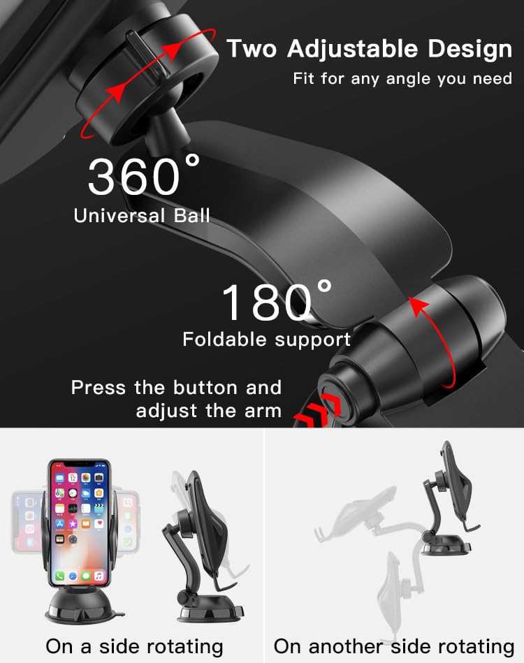 Generic - حامل موبايل للسيارة قابل للتعديل مع دوران حر 360 درجة – قاعدة تثبيت بالشفط – موديل C99