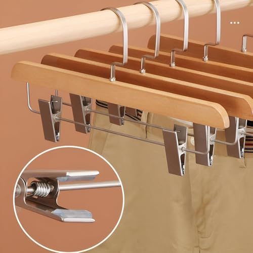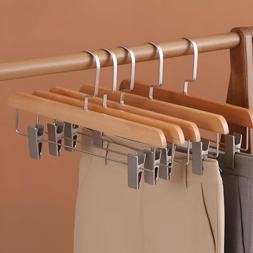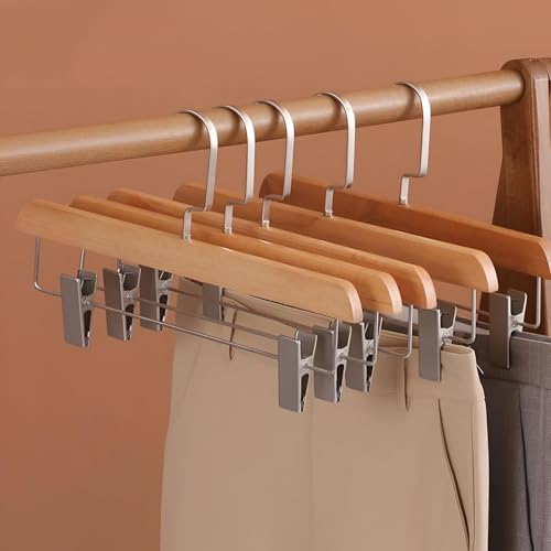 Generic - شماعة مشابك قابلة للتعديل - منظم ملابس خشبي متين للسراويل والبناطيل مع اغطية شد، مصمم لتوفير المساحة ومنع الانزلاق (2)