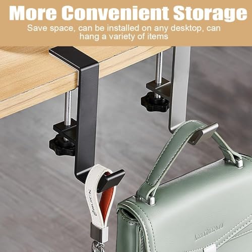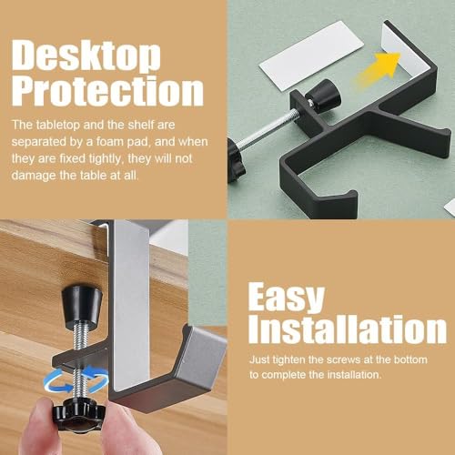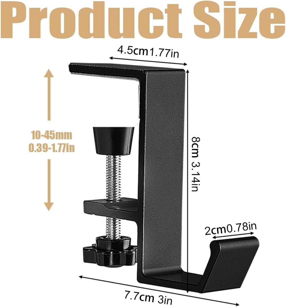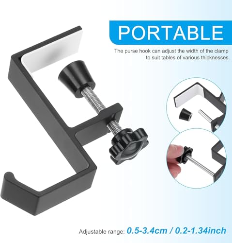 - خطافات تثبت على حافة المكتب قابلة للتعديل: تم تصميم خطاف الشنطة المكتبية ليناسب معظم المكاتب، مع مشبك قابل للتعديل بسهولة يمكن تدويره وشده لاستيعاب سُمك المكتب الذي يتراوح بين 1 سم و4.5 سم.