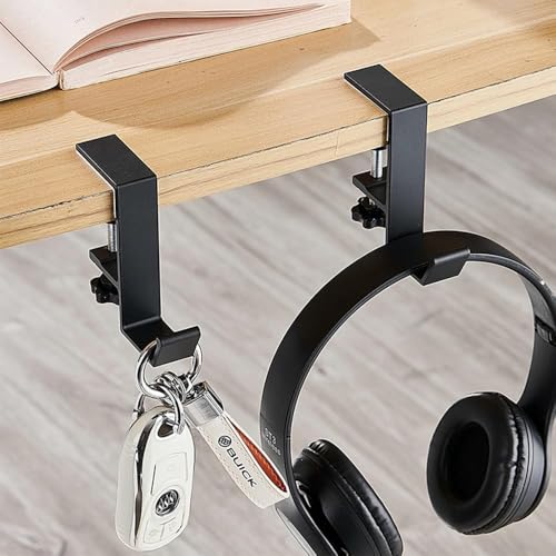 Generic - خطاف حافة قابل للتعديل للمكتب لحمل سماعة الرأس للألعاب وحامل شنط اليد يوضع أسفل المكتب، حامل طاولة متين (لون أسود)