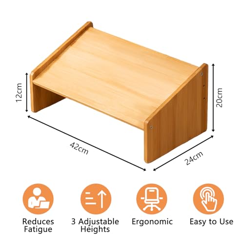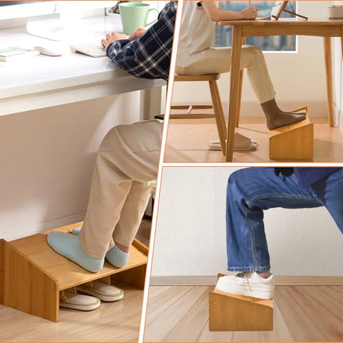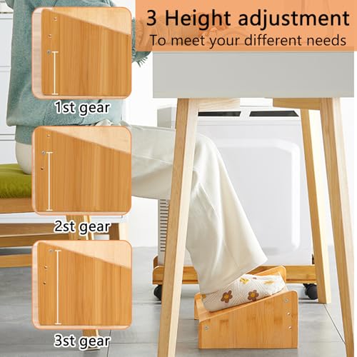 GeluEla - مسند قدم مكتبي قابل للتعديل بتصميم مريح تحت المكتب مع 3 مستويات خشب قابلة للتعديل لتحسين وضعية الجلوس والدورة الدموية مناسب للاستخدام في المنزل أو المكتب أو أثناء السفر