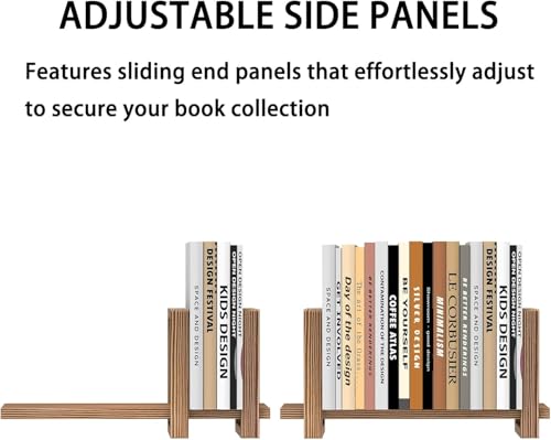 - ألواح جانبية قابلة للتعديل: تتميز بألواح طرفية منزلقة يمكن ضبطها بسهولة لتأمين مجموعة كتبك (1-18+ عنصر). ما عليك سوى تحريك الحواجز لإنشاء مسافات مخصصة تمنع الانقلاب، والحفاظ على كتبك في وضع مستقيم.