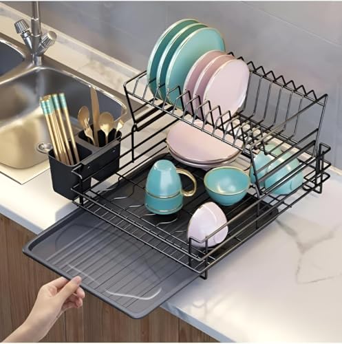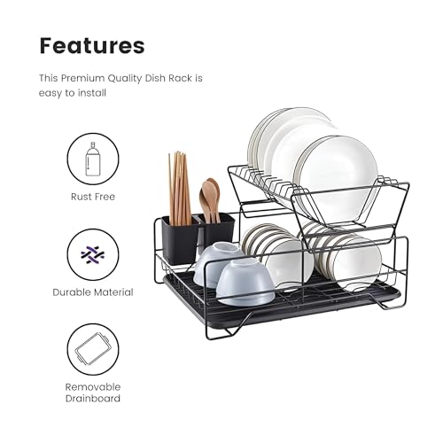 - مصنوع من خليط معدني عالي الجودة ومقاوم للصدأ، يتفوق هذا الرف على معظم رفوف تجفيف المطبخ في السوق من حيث المتانة والأداء طويل الأمد.