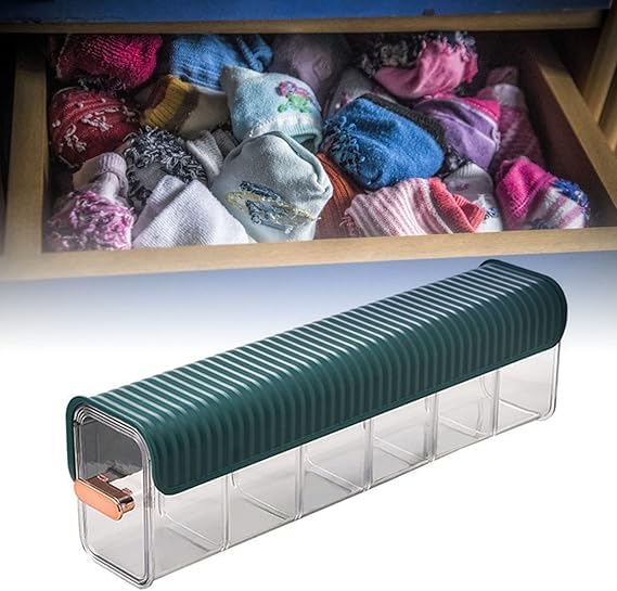 Generic - منظم أدراج بتصميم عصري، باللون الأخضر، مصنوع من البلاستيك، قابل للتعديل، مقسم إلى 6 أقسام لتنظيم الجوارب والإكسسوارات