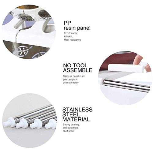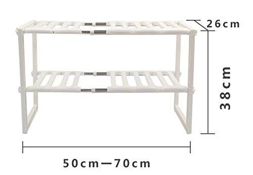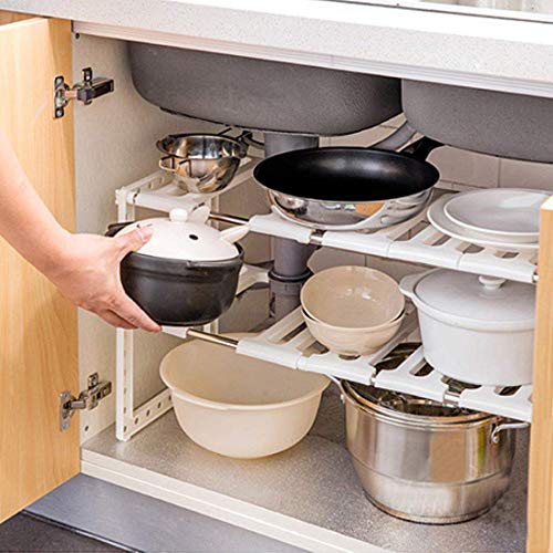 Spaceshoop - رف منظم للتخزين تحت الحوض قابل للتعديل والتمديد متعدد الاغراض للمطبخ والحمام، لون ابيض، من ساكسفوكس، ستانلس ستيل