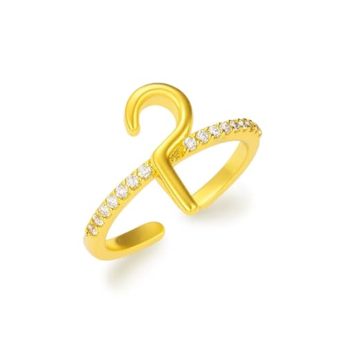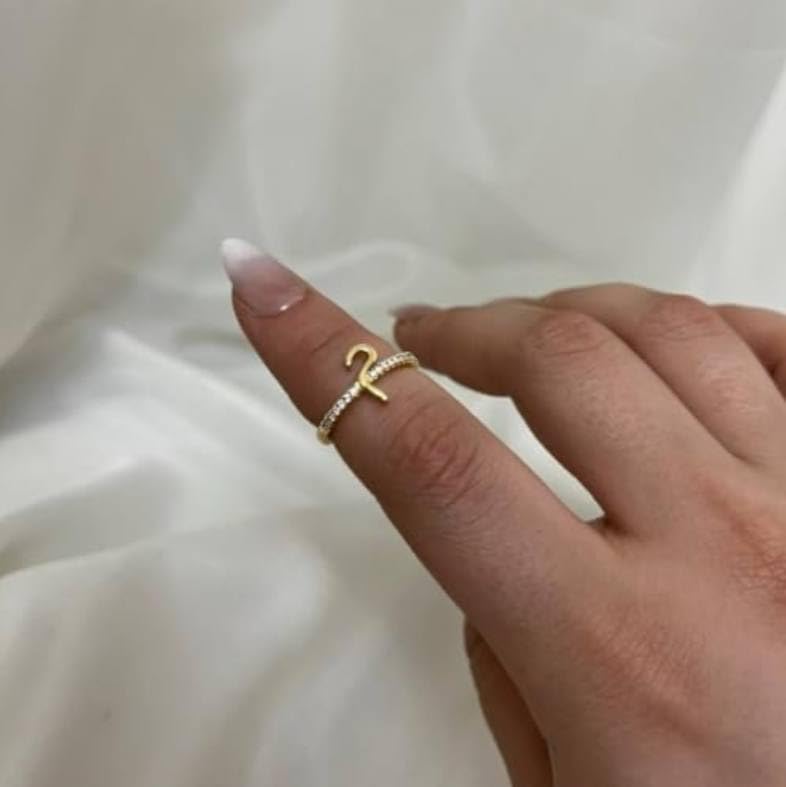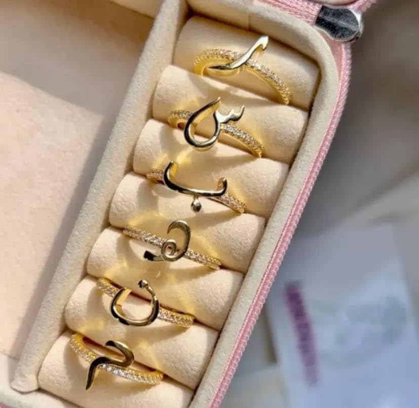 Generic - خاتم ذهبي قابل للتعديل بالحرف العربي الأول من الاسم للنساء - مجوهرات فن الخط مخصصة مع زركونيا مكعب لامع، خاتم عصري أنيق مفتوح بتصميم إسلامي، هدية مجوهرات إسلامية لعيد الميلاد والذكرى السنوية