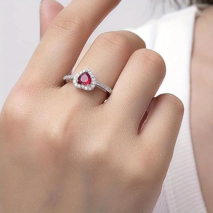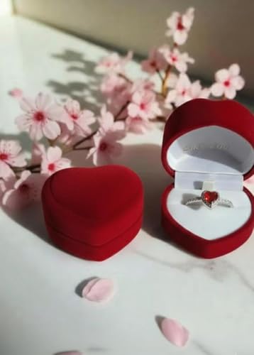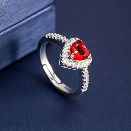 Generic - خاتم مفتوح على شكل قلب قابل للتعديل + علبه عل شكل قلب للنساء، مزين بكريستالات زركونيا، مثالي للخطوبة، وذكرى الزواج، وكهدية لمناسبات متنوعة ، عيد الحب، عيد الميلاد، .