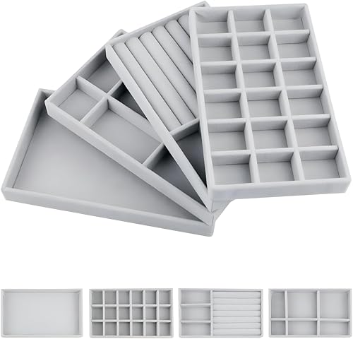 Generic - عرض مجوهرات قابل للتعديل - صواني أنيقة مع أقسام قابلة للإزالة لعرض الخواتم والأقراط وغيرها من الأشياء القيمة (مجموعه من 8 قطع)
