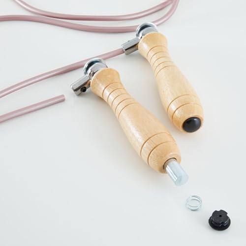 Generic - حبل قفز قابل للتعديل بمقابض خشبية، نظام محمل كروي، سلك من بلاستيك بي في سي، معدات تمارين اللياقة البدنية، وردي
