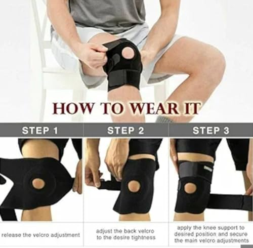 Generic - مشد ركبة قابل للتعديل مع دعامات سيليكون، دعامة مفتوحة من النيوبرين، لتخفيف آلام التهاب المفاصل وتمزق الرباط الصليبي، مقاس واحد (2)