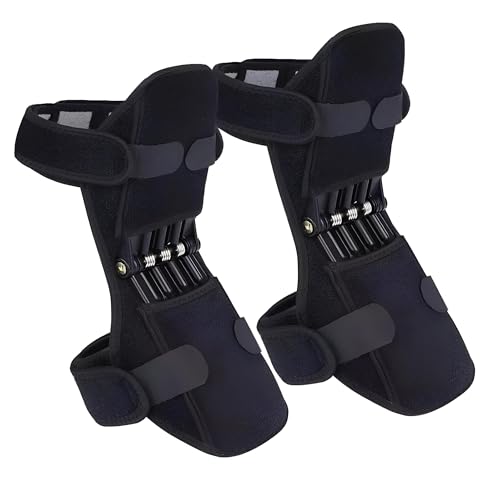 Generic - دعامة ركبة قابلة للتعديل - تتميز بتثبيت معزز بنابض وقضبان جانبية معدنية صلبة للتعافي من تمزق الغضروف المفصلي والتحكم في آلام المفاصل والتدريب الرياضي، اسود، عبوة من قطعتين