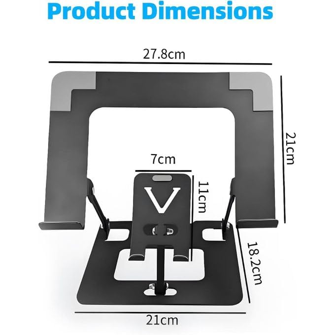 Generic - حامل لابتوب قابل للتعديل مع حامل موبايل(2 في 1)،تصميم مريح وقابل للطي،معدن بالكامل، مانع للانزلاق، خفيف الوزن ومحمول،زاوية قابلة للتعديل 180 درجة,تصميم ثابت متوافق مع مختلف الاجهزة