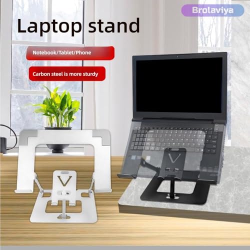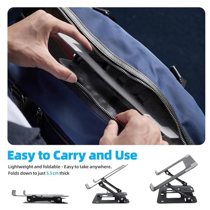 - 【توافق واسع】 الحامل بيدعم جميع الأجهزة من 10 لغاية 16 بوصة، زي MacBook Pro/Air، Dell، Asus وLenovo. مصنوع من سبائك الألومنيوم الممتازة اللي بتخليه أكثر ثباتًا وقوة ويدعم لحد 10 كجم (22 رطل).