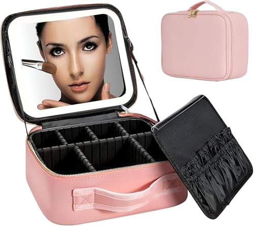 Generic - حقيبة تخزين مكياج قابلة للتعديل - حقيبة كبيرة محمولة مع مرآة LED ومصابيح متغيرة اللون، مثالية لتنظيم مستلزمات العناية بالبشرة والمكياج